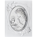 Obrazek Srebrny Pamiątka I Komunii dla dziewczynki owal z podpisem w ramie DS05FOA