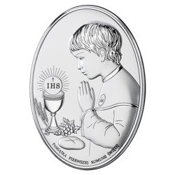 ( ilość produktów: 233 )Obrazek Srebrny Pamiątka I Komunii dla chłopca owal z podpisem kolor DS05CO