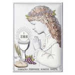 Obrazek Srebrny Pamiątka I Komunii dla dziewczynki prostokąt z podpisem kolor DS04CA