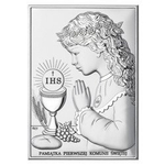 Obrazek Srebrny Pamiątka I Komunii dla dziewczynki prostokąt z podpisem DS04A