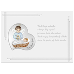 Obrazek na chrzciny srebrny Aniołek w modlitwie z podpisem 6667S