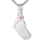 Srebrna przywieszka pr. 925 rodowana - stópka z różową cyrkonią AKC04